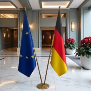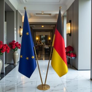 Duitsland en EU vlag met voeten en stokken