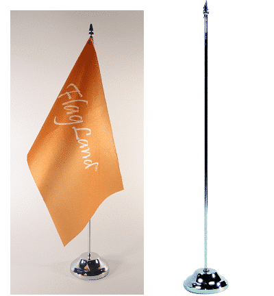 Tafelvlaggenstandaard voor gebruik binnenshuis, ideaal voor kantoren, vergaderzalen en institutionele ruimtes. De standaard is ontworpen voor één vlag, gemonteerd op een metalen stang, voor een sobere en elegante presentatie. De vlag van 16 × 24 cm is gemaakt van een satijnachtige polyester stof, aan beide zijden bedrukt en afgewerkt met een omhulsel voor een nette montage. De verchroomde stalen voet zorgt voor stabiliteit en een moderne, discrete afwerking. De totale hoogte is 355 mm, met een stok van 330 mm. Verkrijgbaar met of zonder vlag.