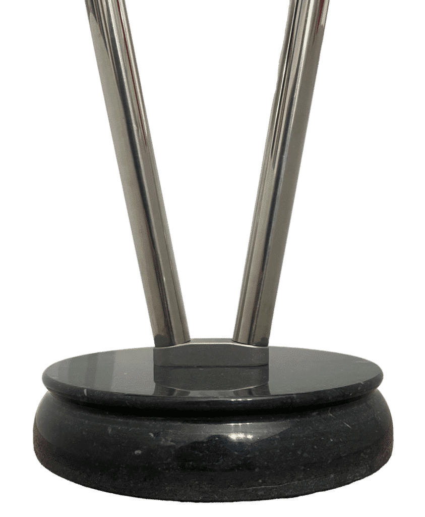 Zwart marmeren voetstukken met zilverkleurige roestvrijstalen masten