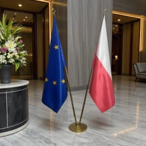 Grootte van vlaggen: 100x150cm, aan beide zijden bedrukt, satijnpolyester